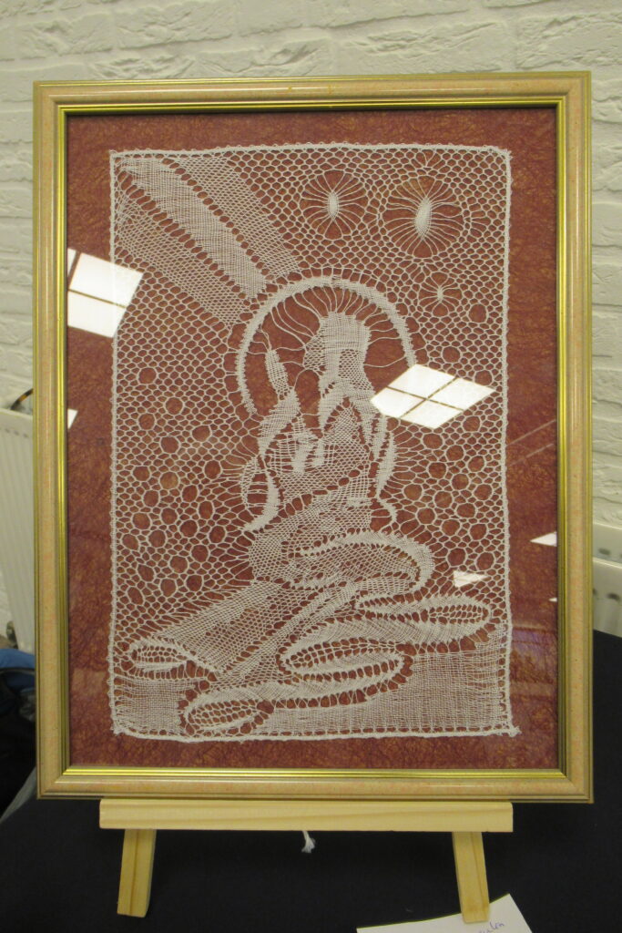 Later zag ik veel leden een start maken met het klossen van 1 van deze ontwerpen. Enkele leden maakten van de gelegenheid gebruik om te overleggen over de jubileumontwerpen voor 2025 of aan eigen werk te klossen.